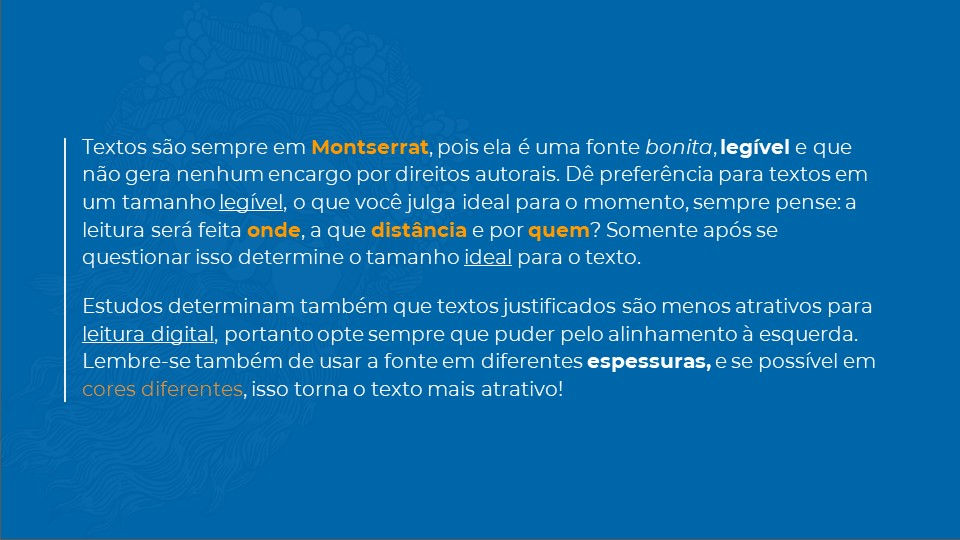 Para o desenvolvimento de apresentações internas, a fim de facilitar os processos internos e normatizar a identidade, criei essa apresentação para o uso de toda a empresa, que pode a partir de então criar slides mais interessantes, atrativos e motivantes.